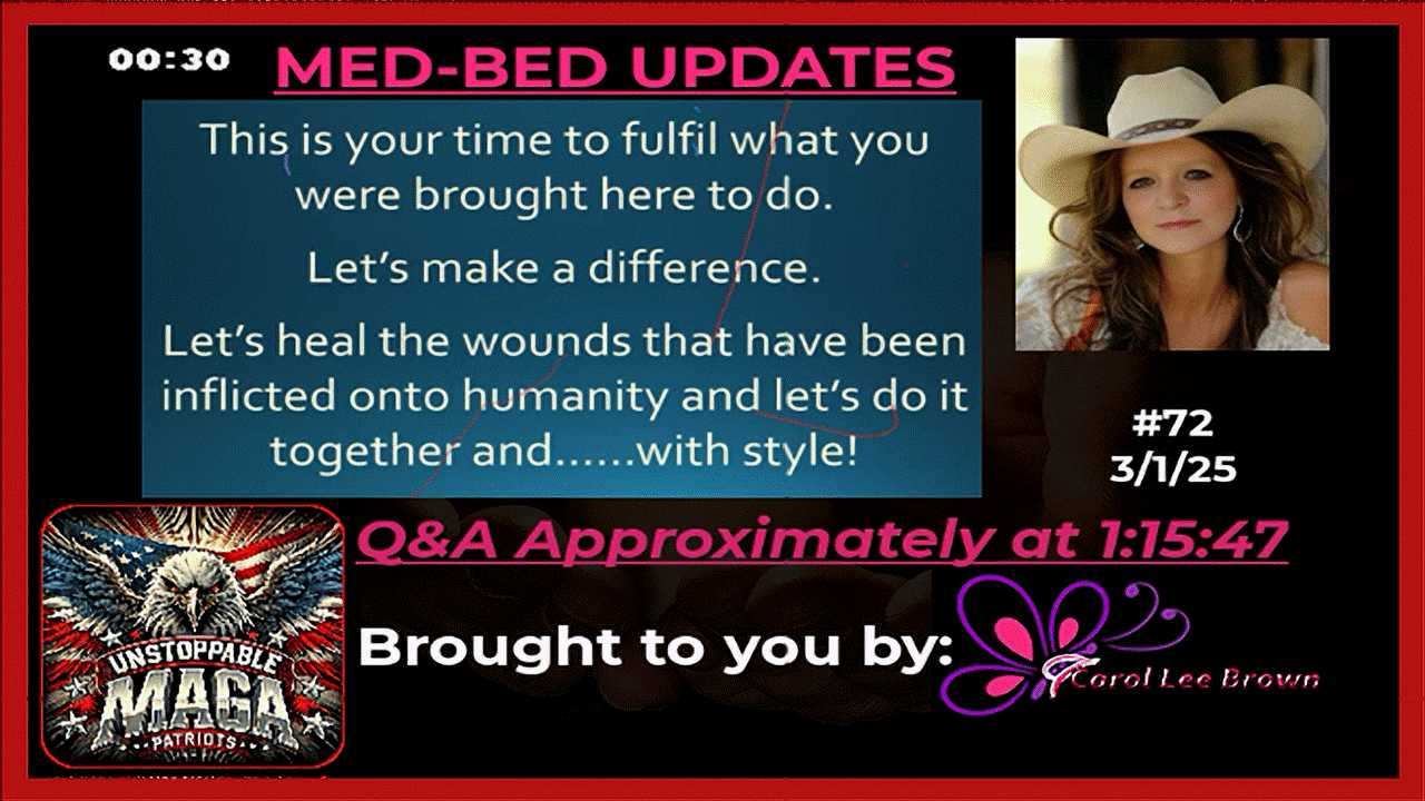 All video info has been shared via: Carol Lee Brown Through "Unstoppable Patriots" and shared to https://Rumble.com/CarolBrown747 and will be posted on Http://UnstoppablePatriots.US